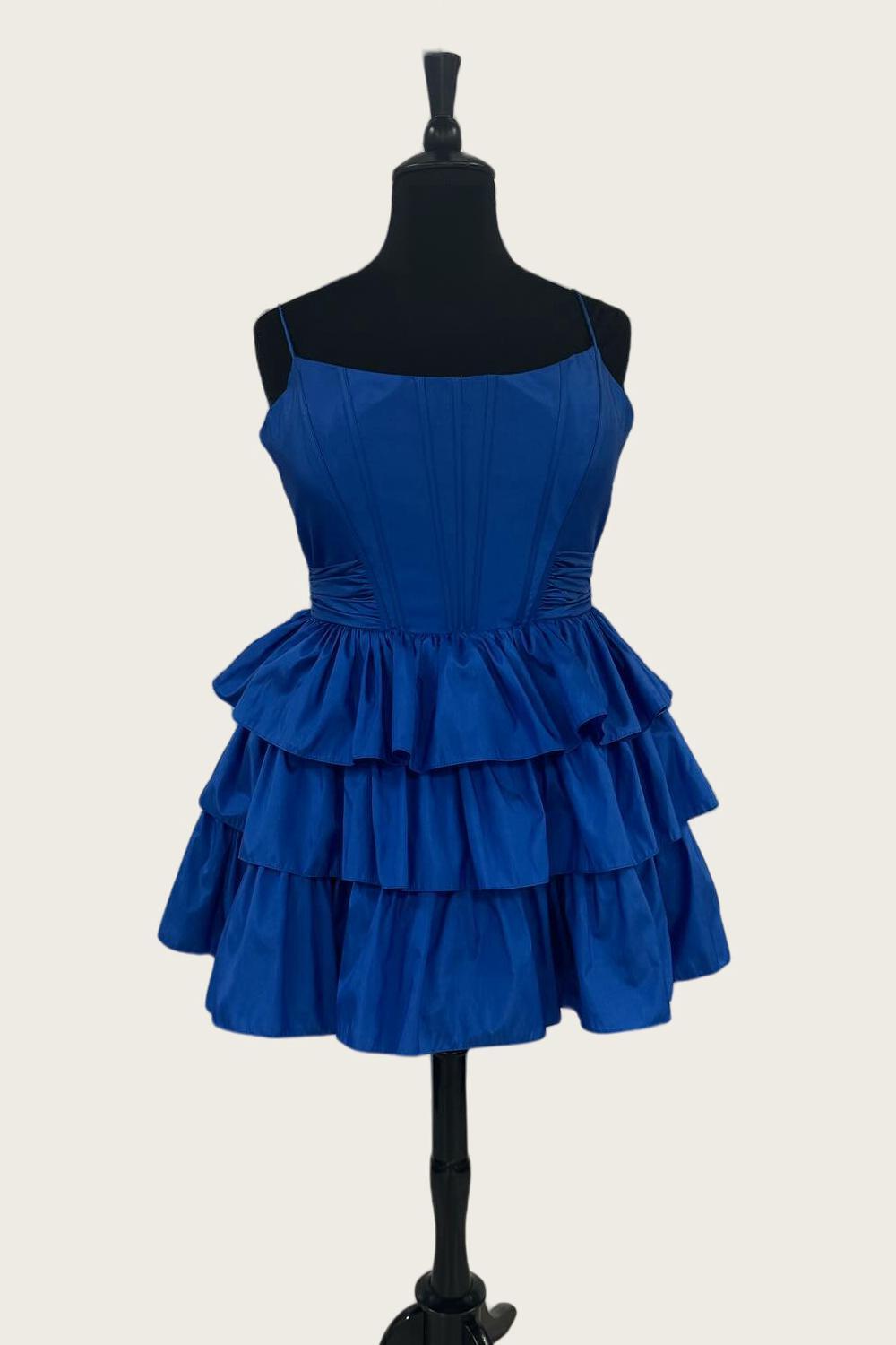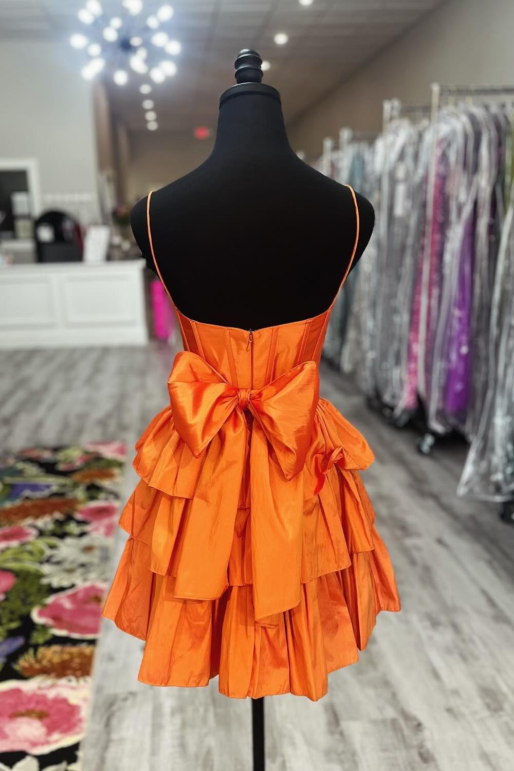 Straps Orange Satin A-line Ruffle Short Homecoming Dress