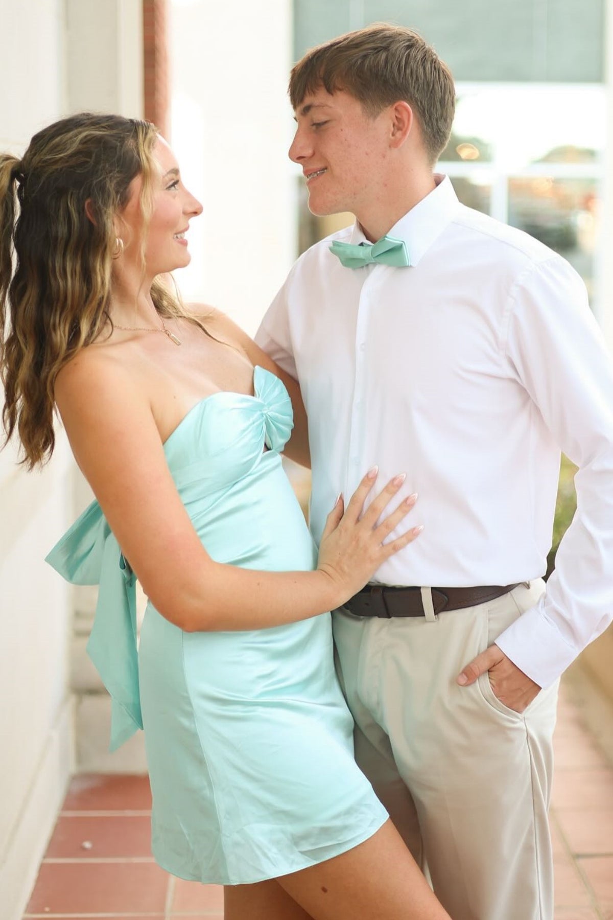 Sweetheart Aqua Open Back Chest Homecoming Dress