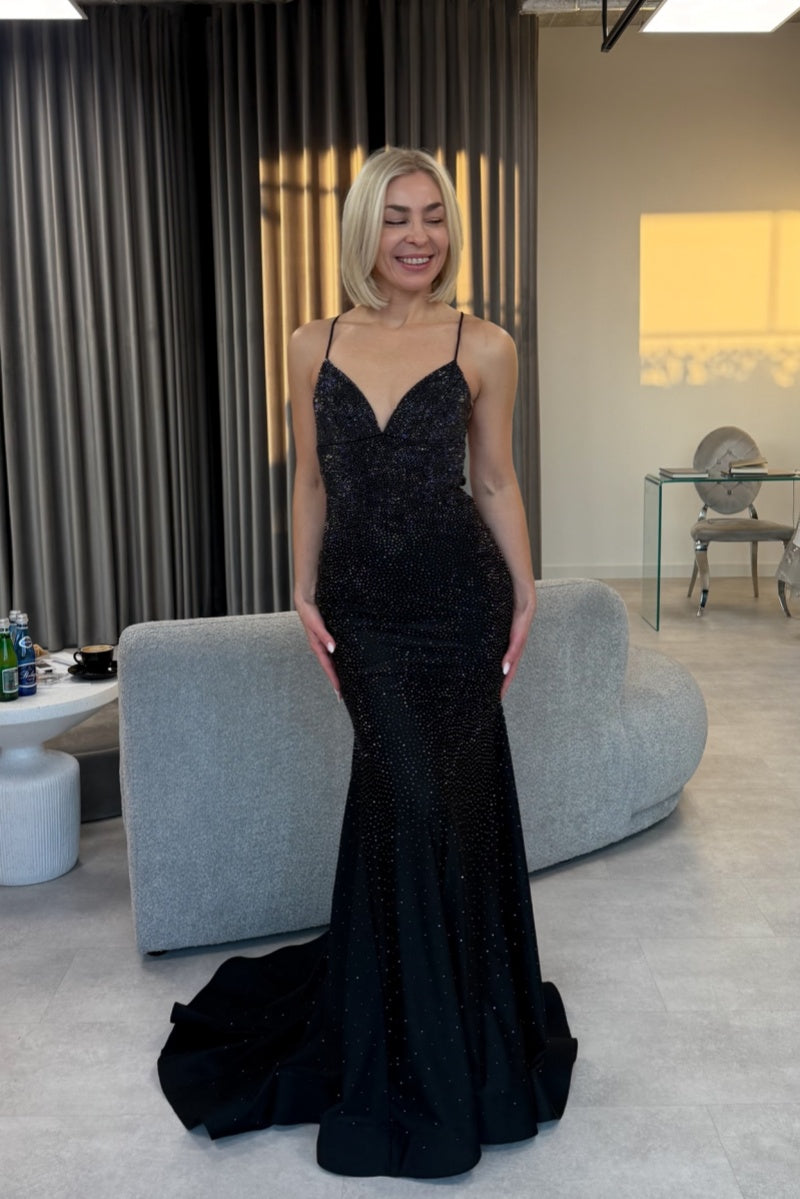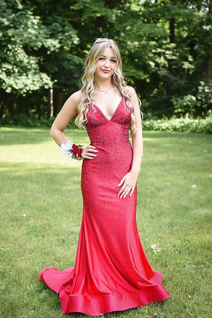 Red Spaghetti Straps V-neck Mermaid Prom Dress