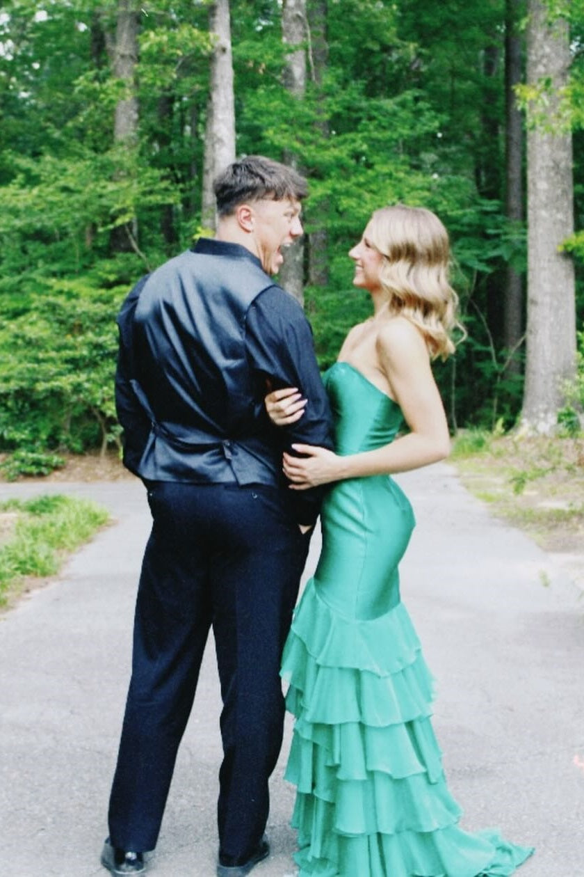 Strapless Pink Mermaid Ruffle Long Party Dress