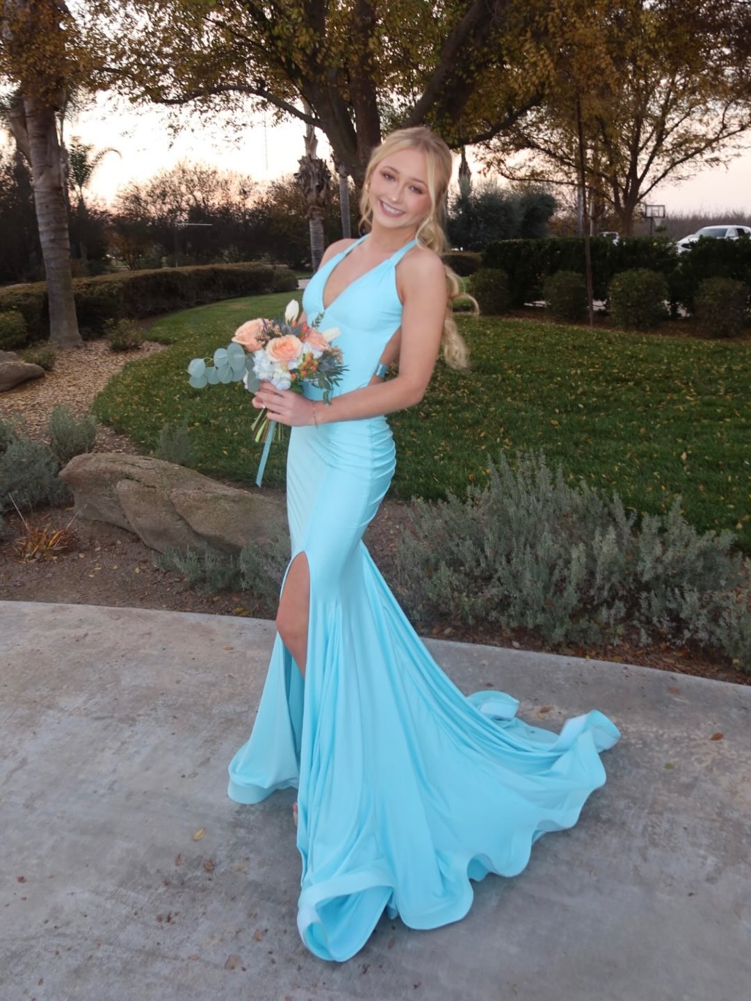V-Neck Yellow Mermaid Long Formal Dress with Train