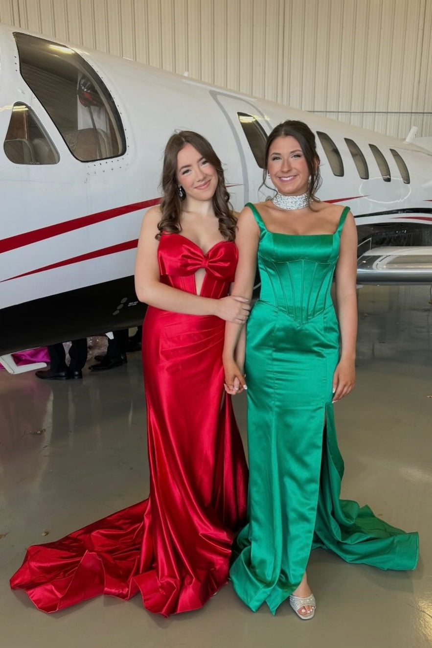 Turn heads in this stunning yellow mermaid dress featuring a strapless design with an elegant satin bow and cut-out detail at the bust. The structured corset bodice provides a flattering silhouette, while the side slit and floor-length train add dramatic movement and sophistication.