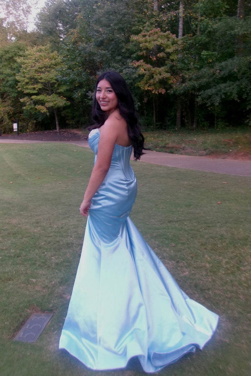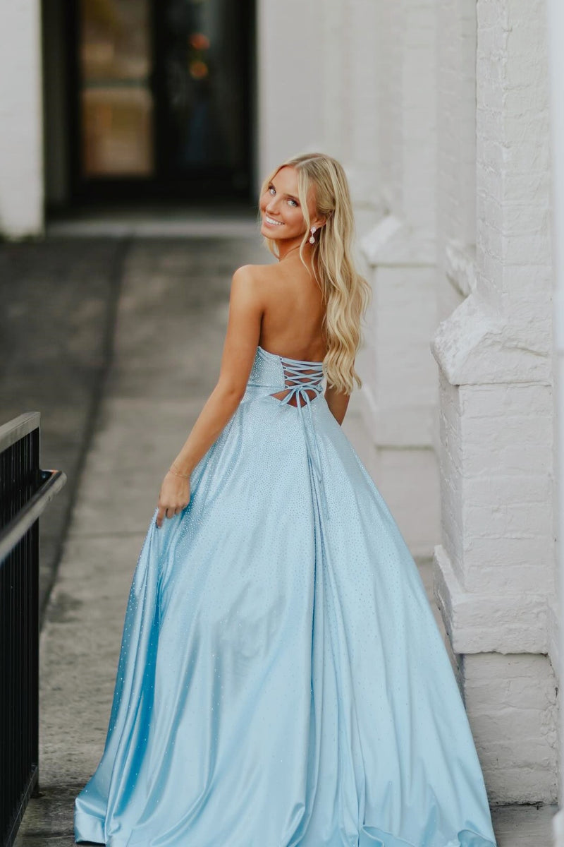 Light Sky Blue Sweetheart Rhinestone Mermaid Dress
