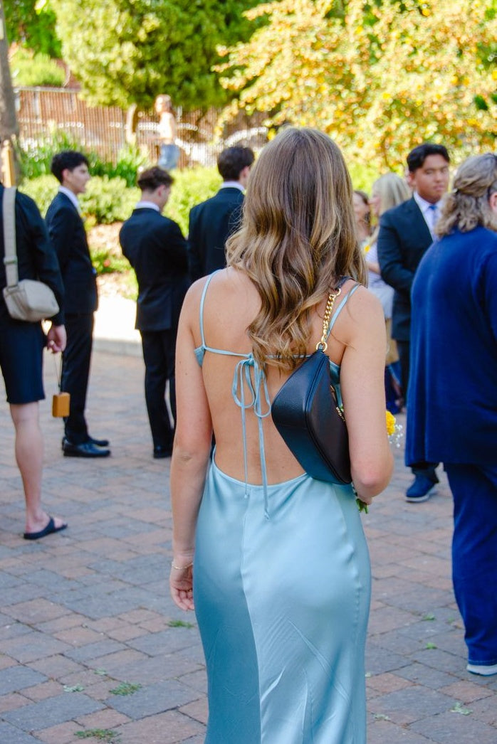 Light Blue Beaded Cutout Sweetheart Long Dress