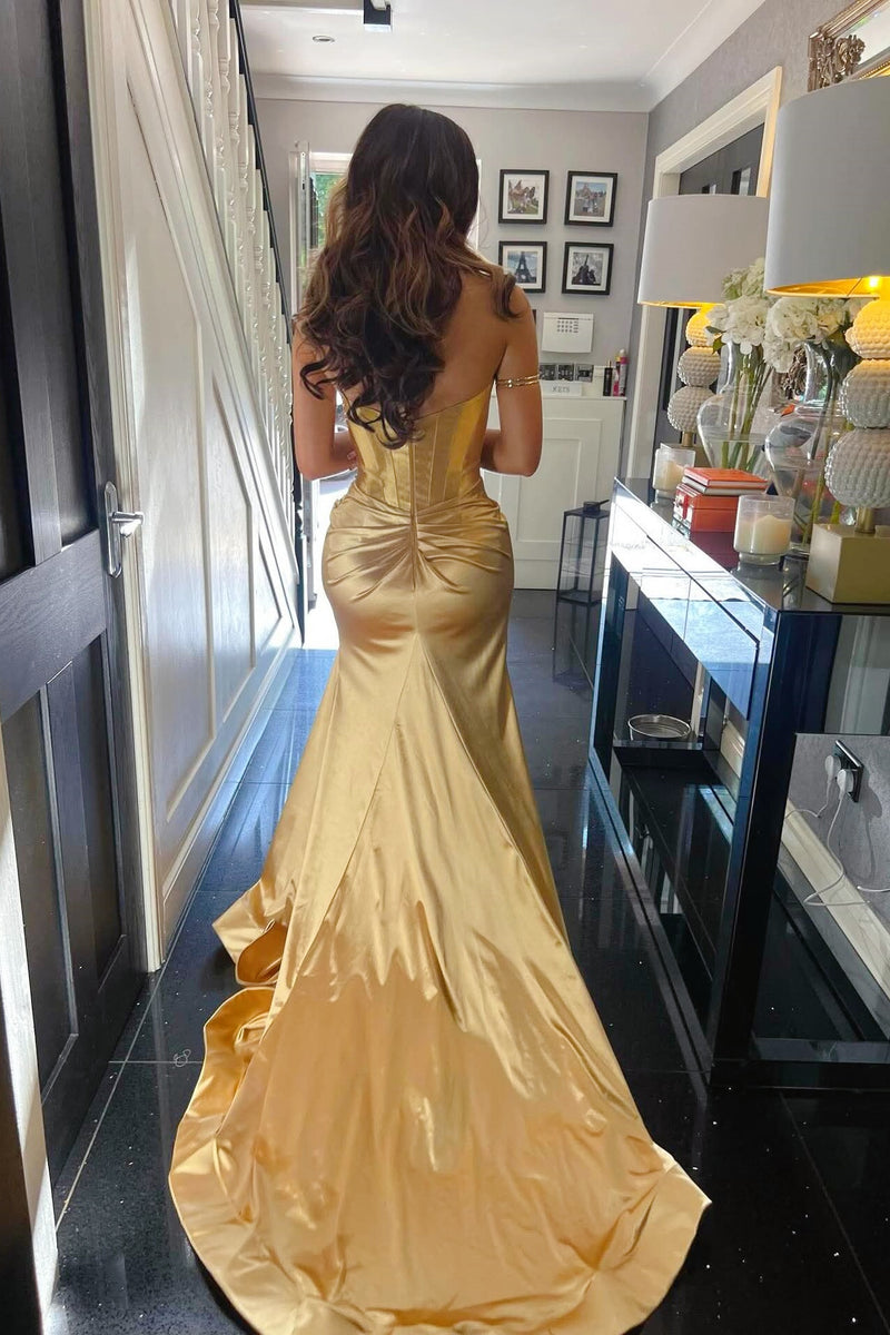 Yellow Strapless Cut-out Bow Mermaid Dress