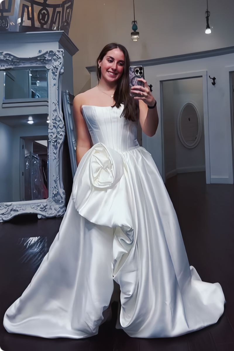 Strapless Fuchsia Ruched Satin Long Prom Dress with Bow