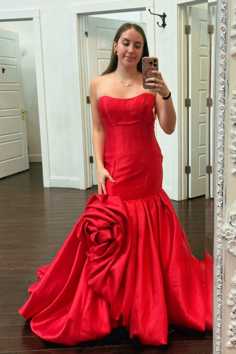 Red Spaghetti Strap Mermaid Dress with Layered Ribbons