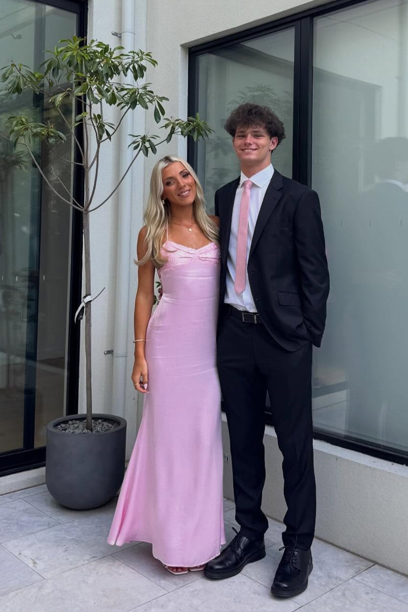 Pink Straps V-neck Cut Prom Dress