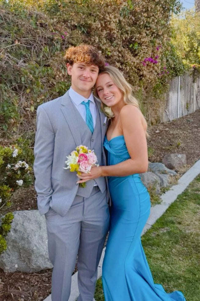 Blue Sweetheart Mermaid Dress with train