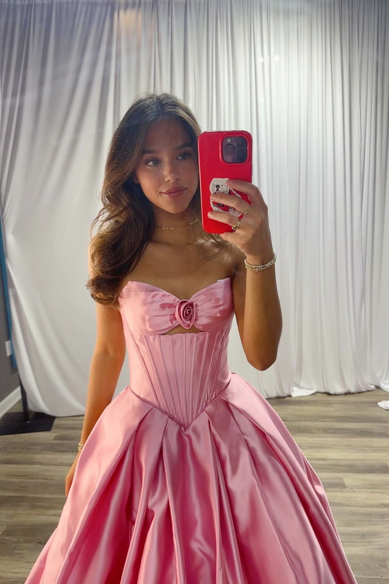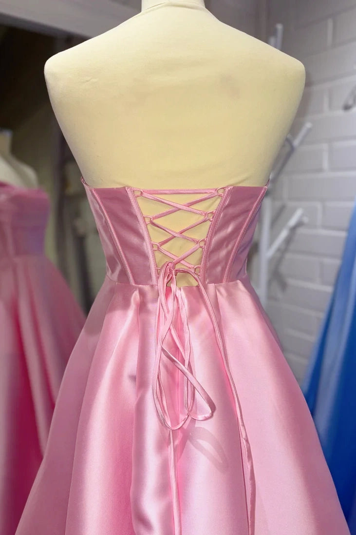 Pink Strapless Satin A-line Gown