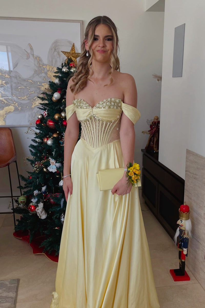 Sage Green A-line Off-the-shoulder Beaded Prom Dress