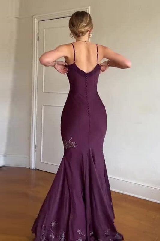 Grape Purple Spaghetti Straps V-Neck Mermaid Gown