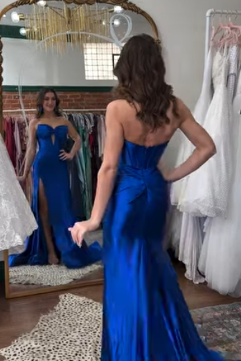 Royal Blue Strapless Mermaid Ruched Dress