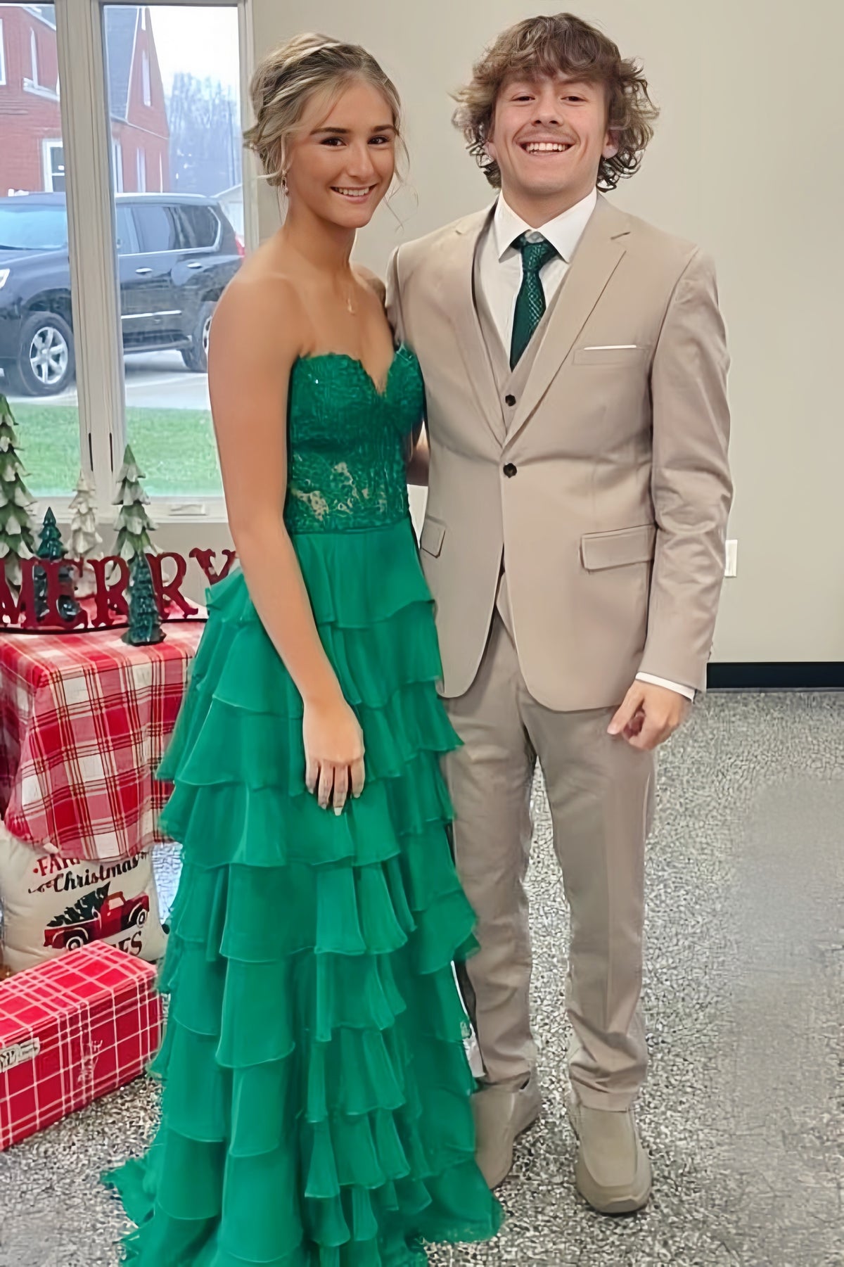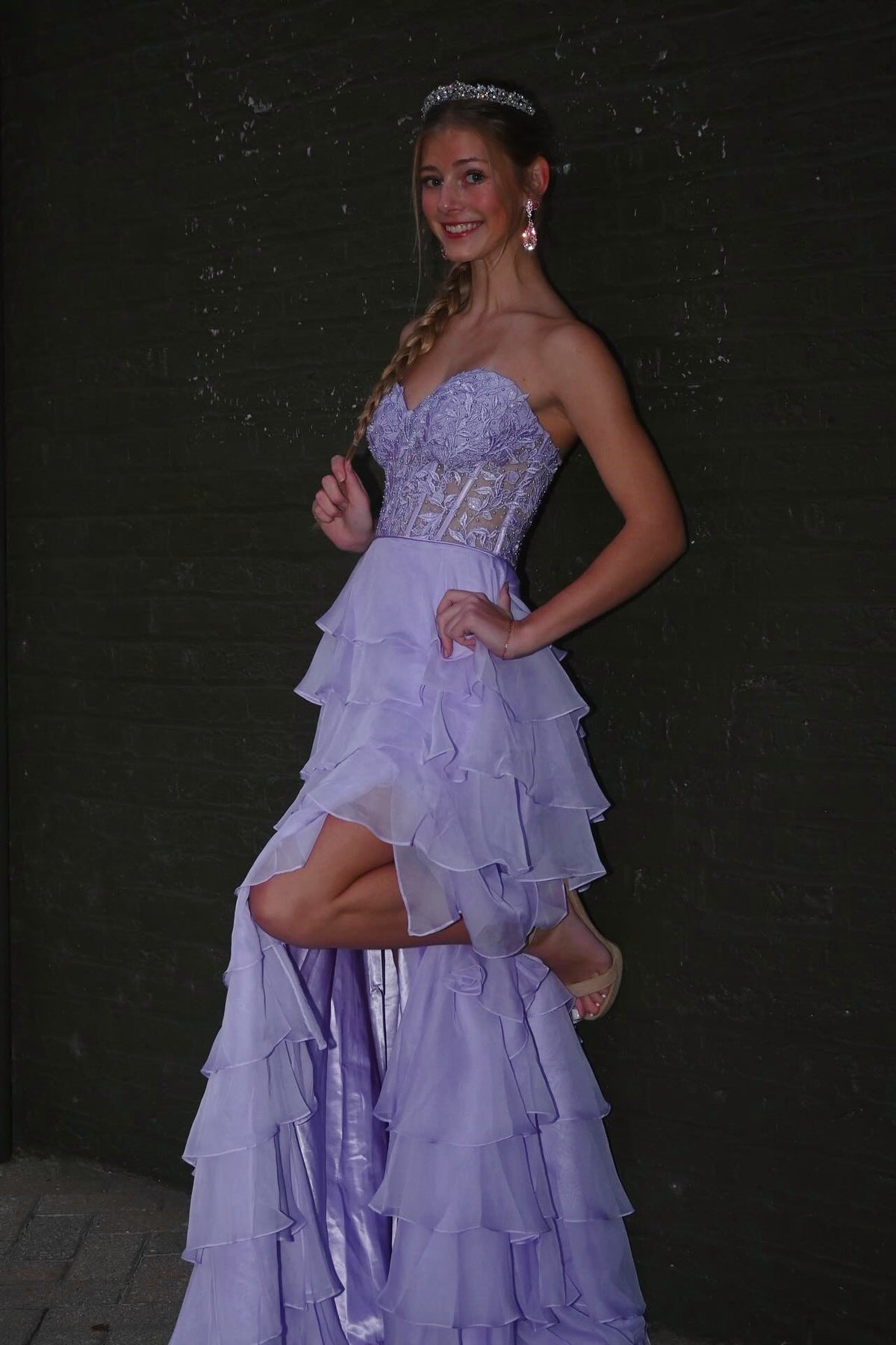 Sweetheart Yellow Lace Tiered Ruffle Prom Dress