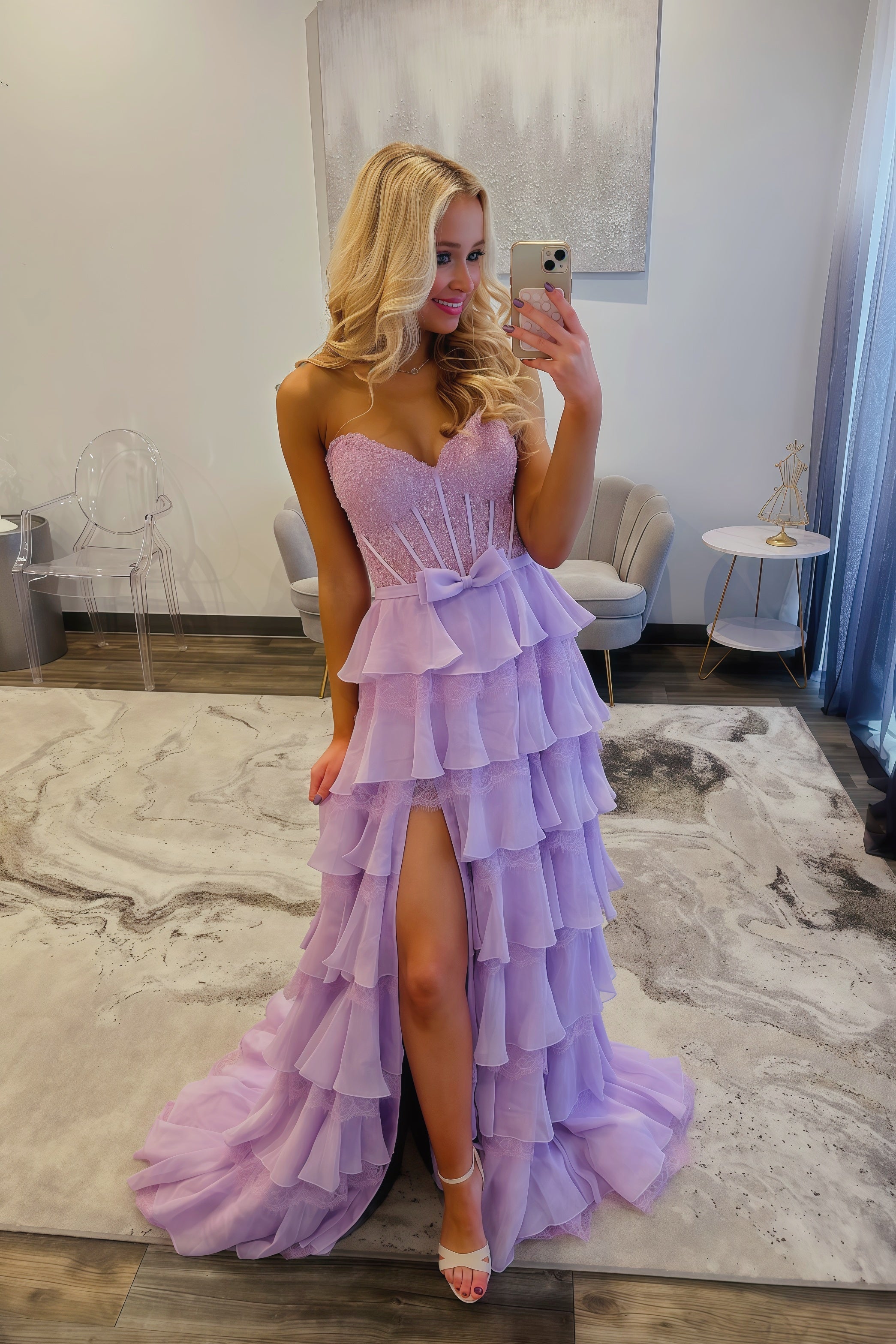 Sweetheart Yellow Tiered Ruffled Tulle Dress