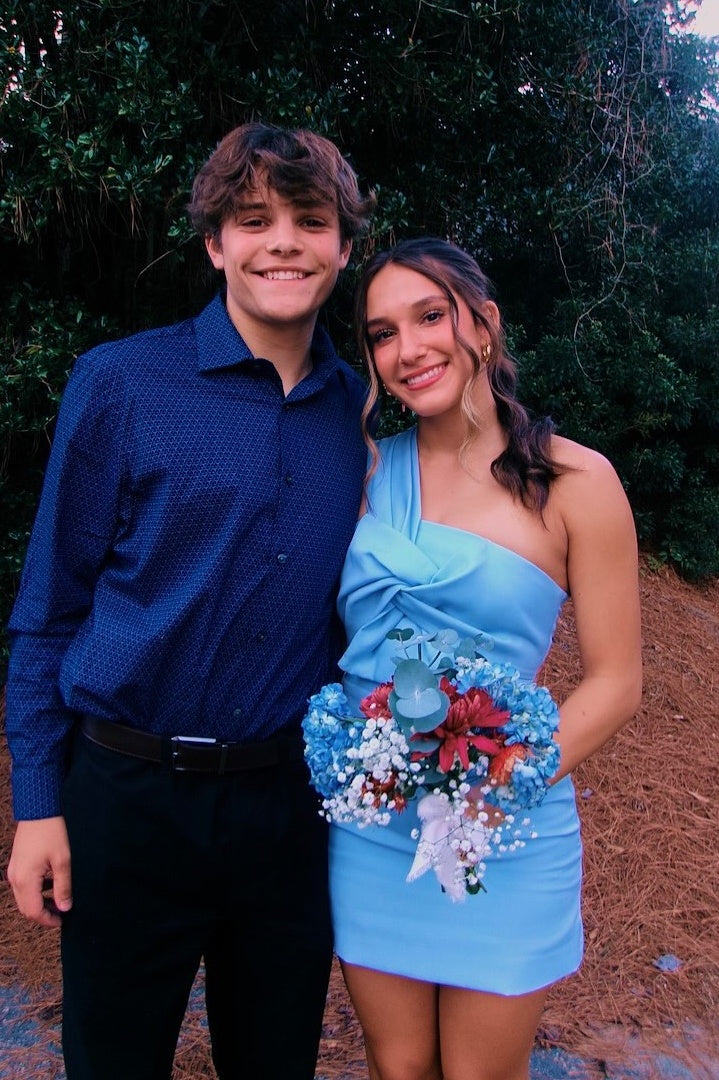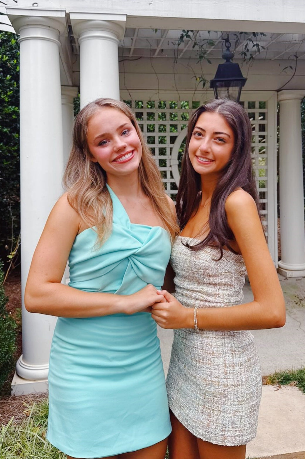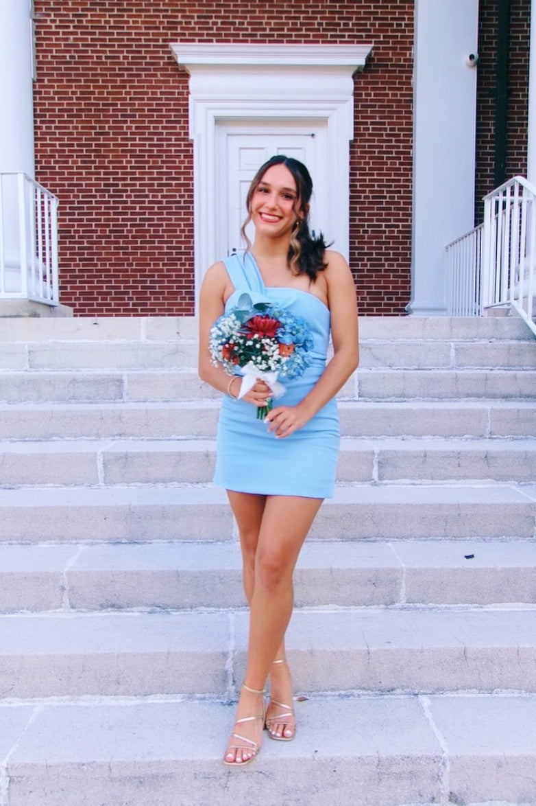 Blue One-Shoulder Twisted Front Fitted Mini Dress