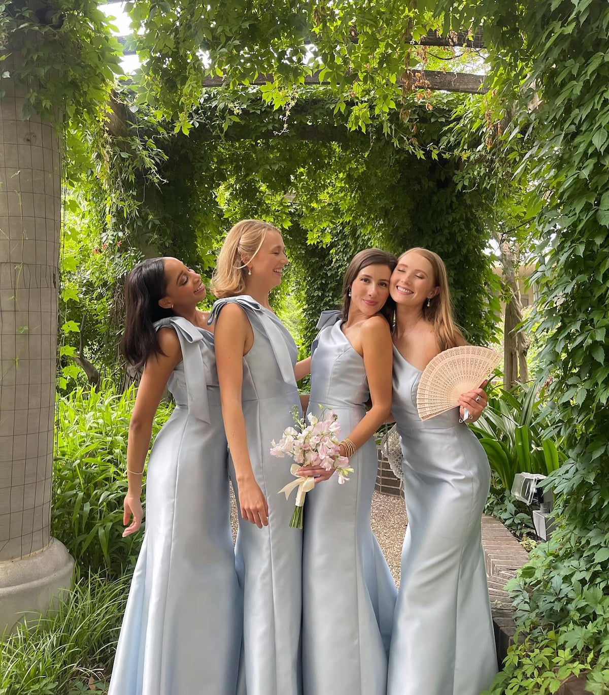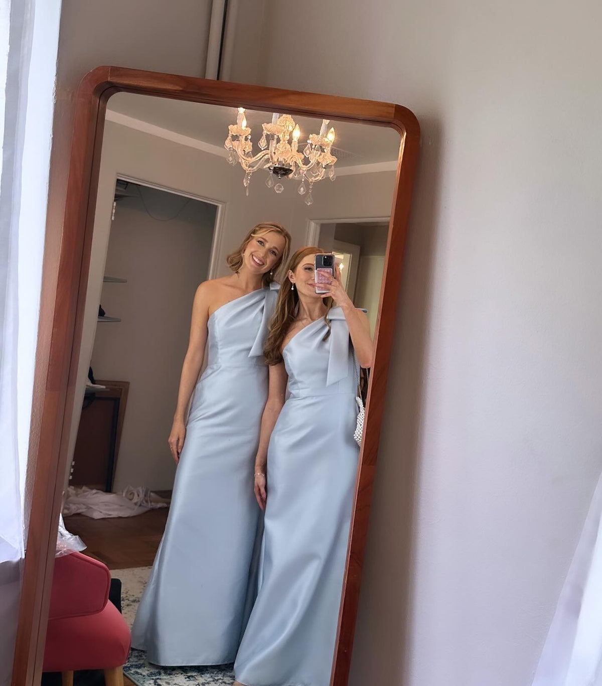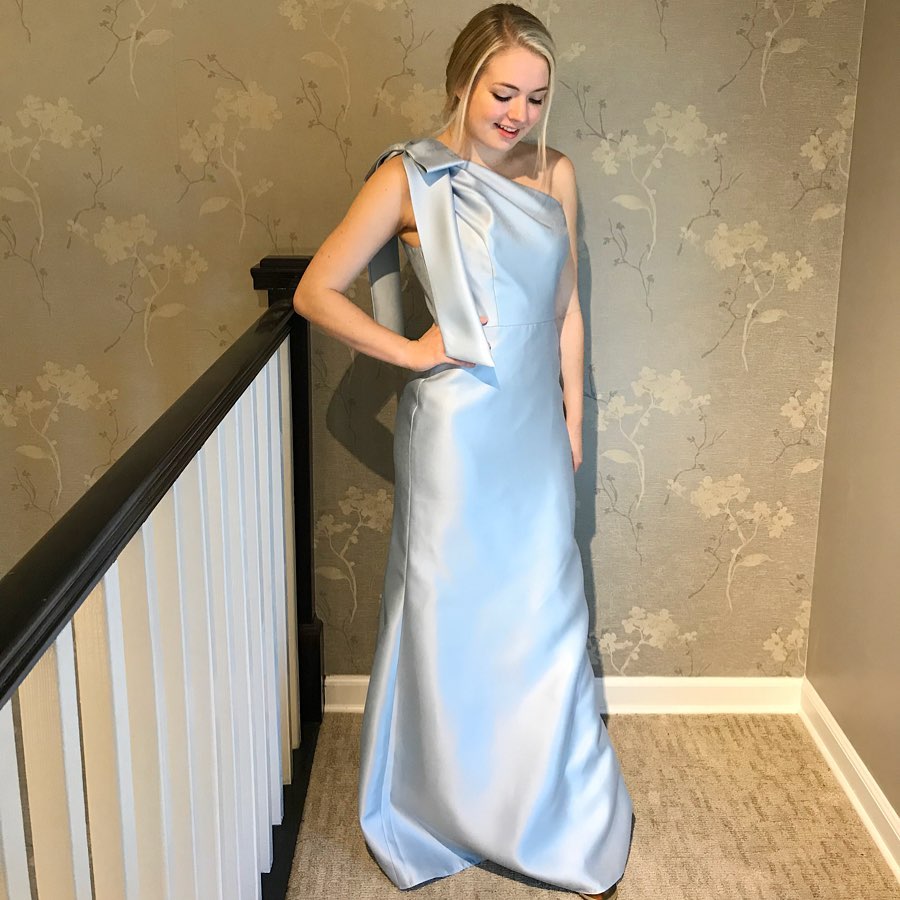 Bow One Shoulder Light Blue Satin Long Bridesmaid Dress