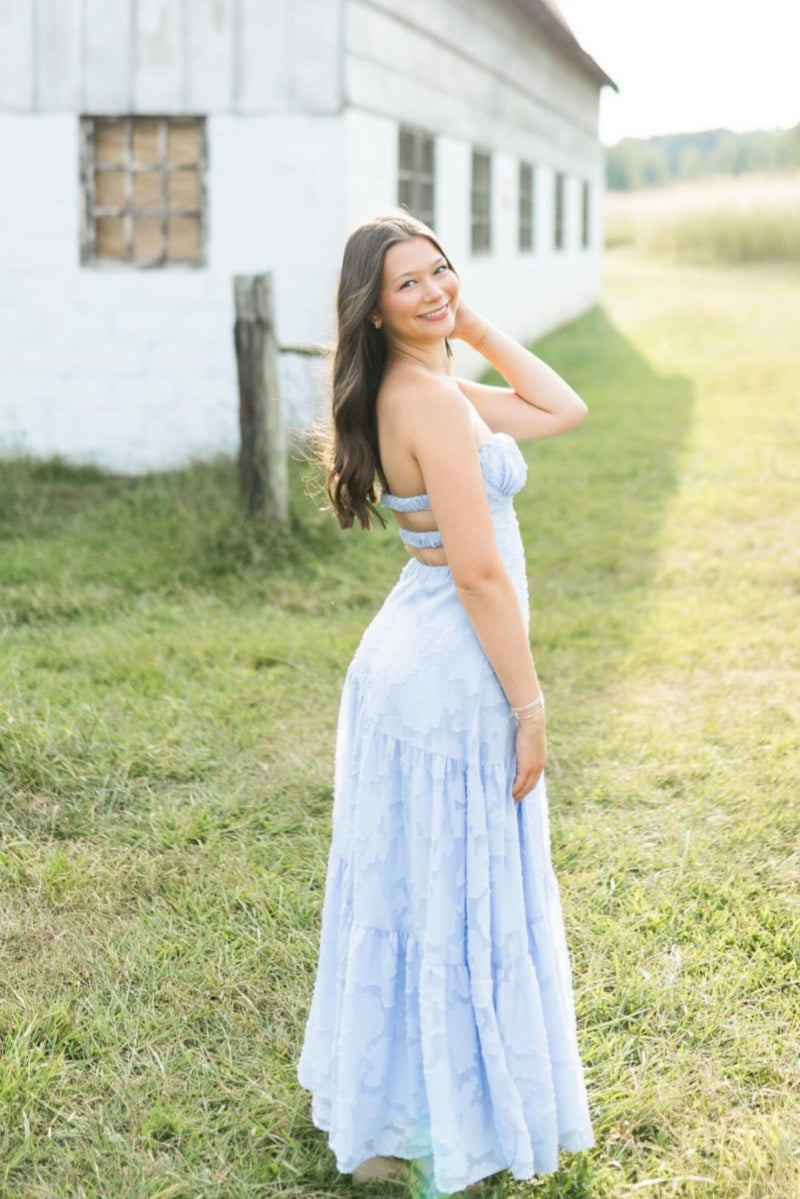 Light Blue Strapless Jacquard A-line Dress