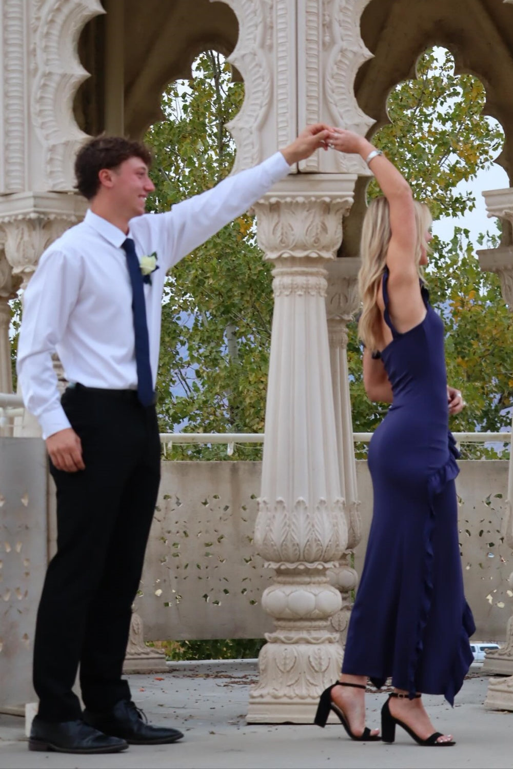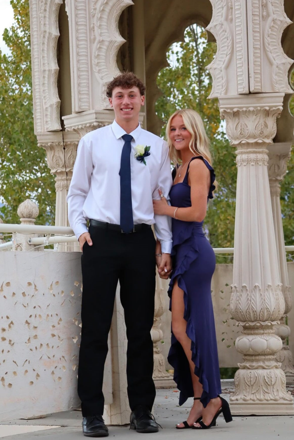 Navy Square A-Line Ruffle Prom Dress