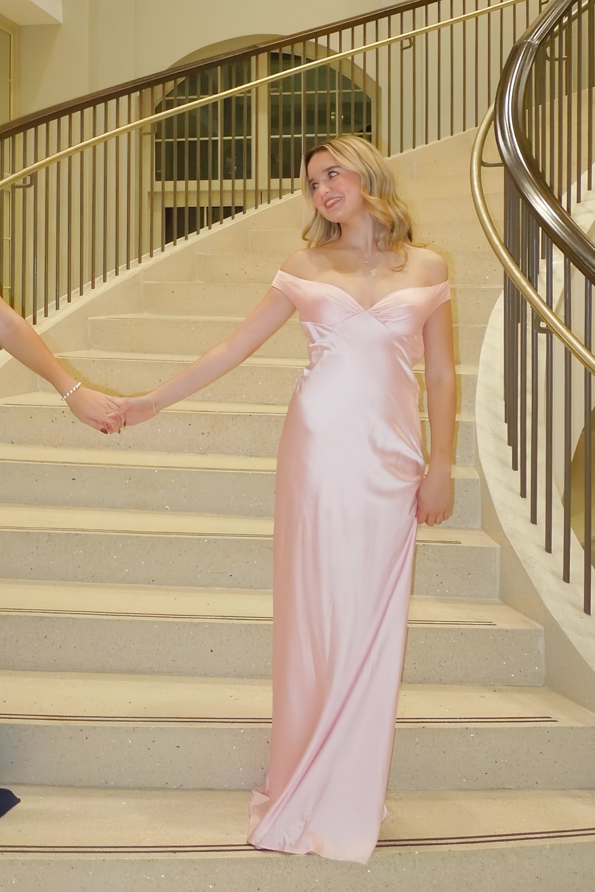 Crafted from luxurious silk, this dress features a flattering sheath silhouette and an elegant off-the-shoulder neckline. Its full length design is highlighted by a dramatic open back, adding a touch of sophistication to your look.