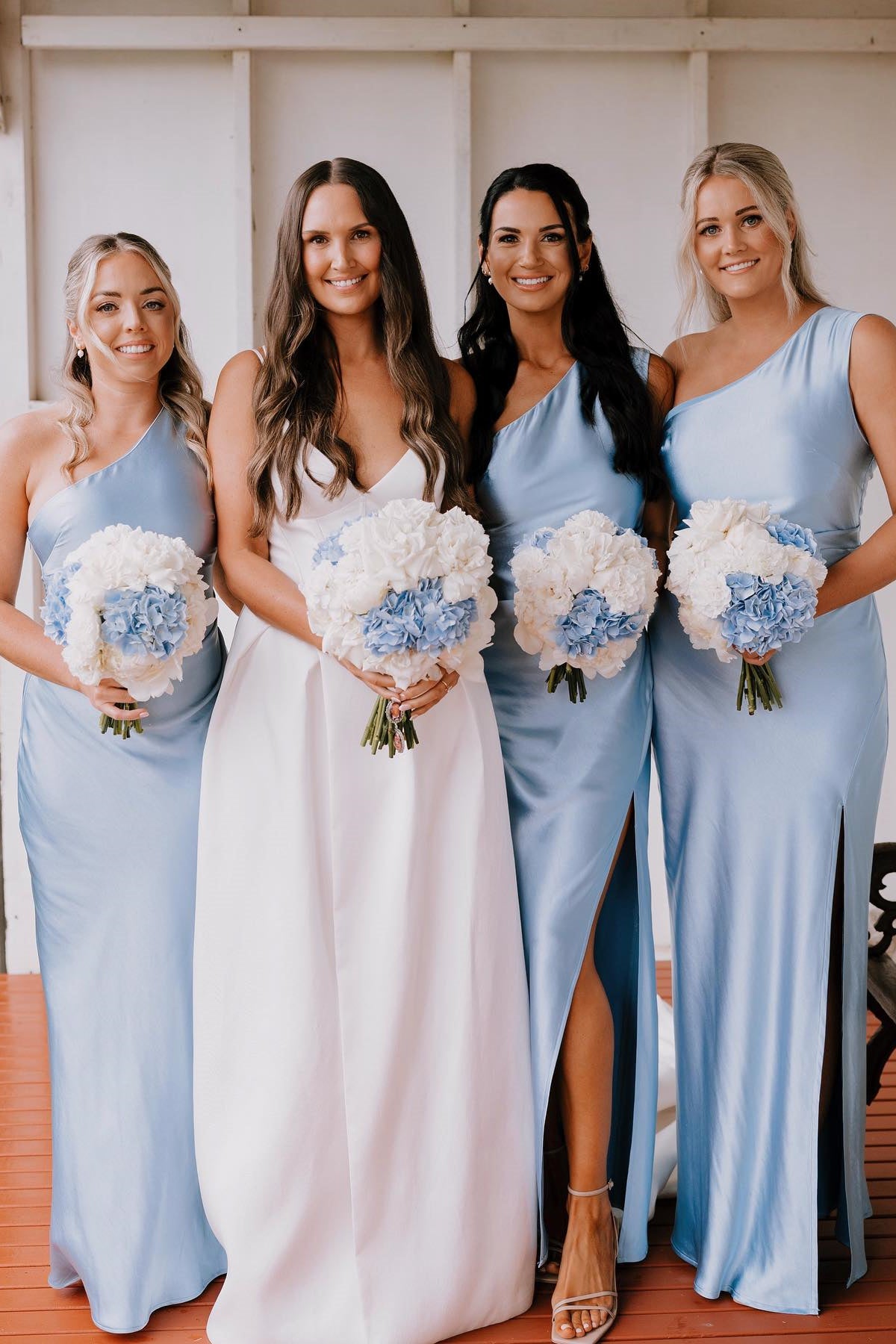 One Shoulder Light Blue Sheath Long Bridesmaid Dress