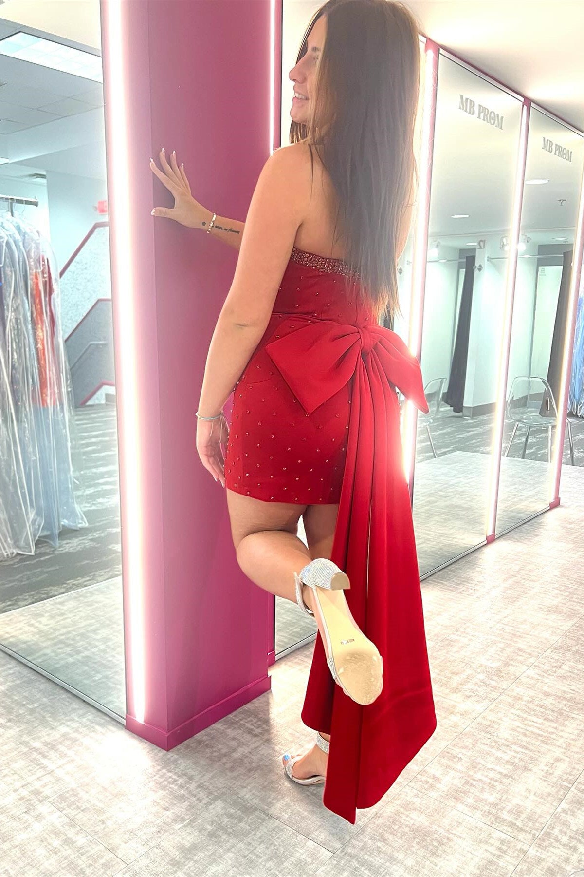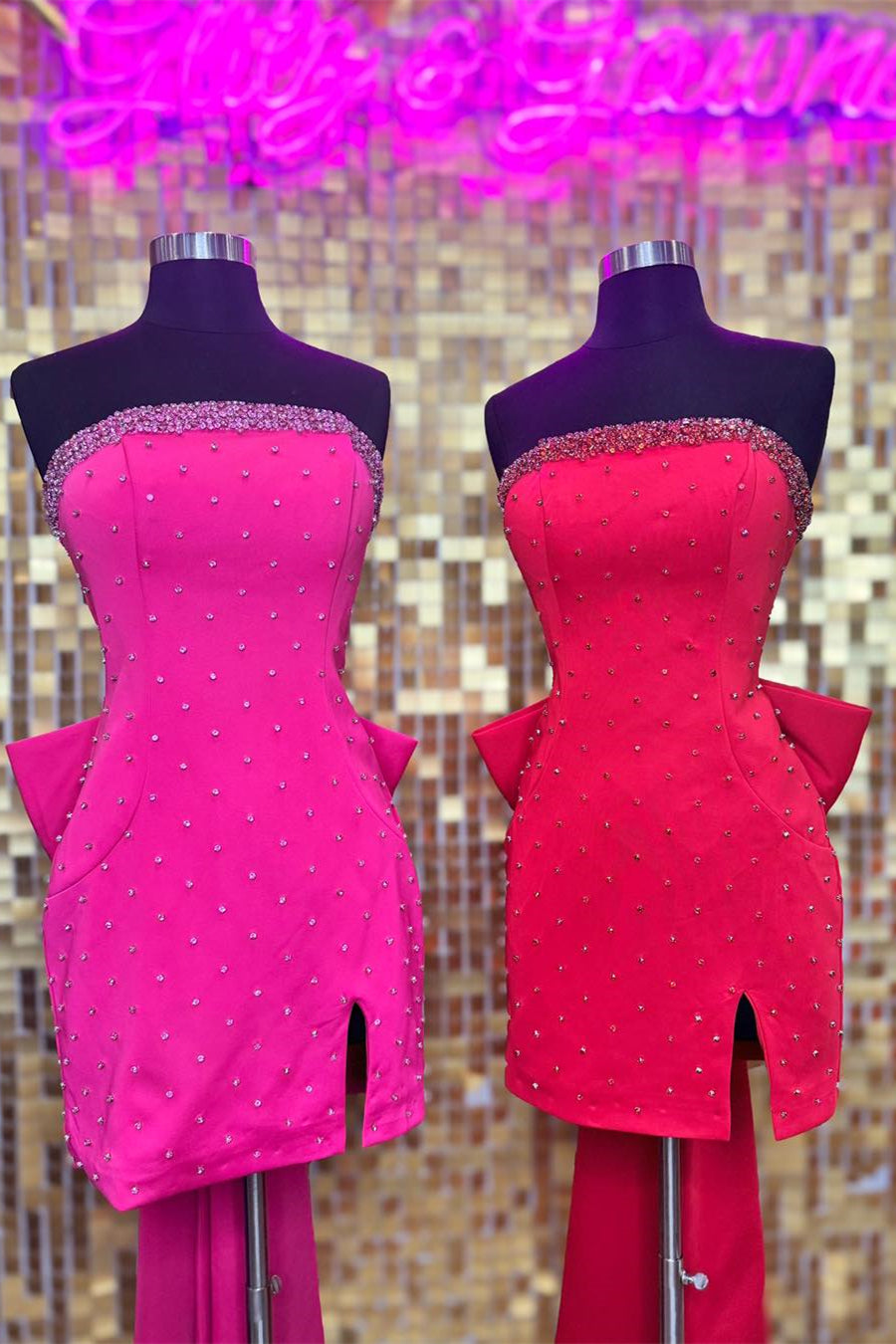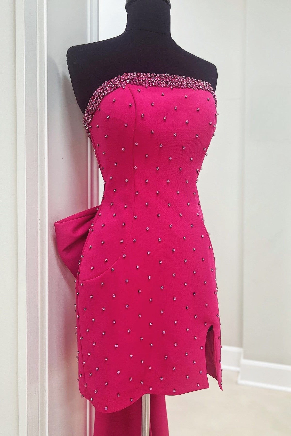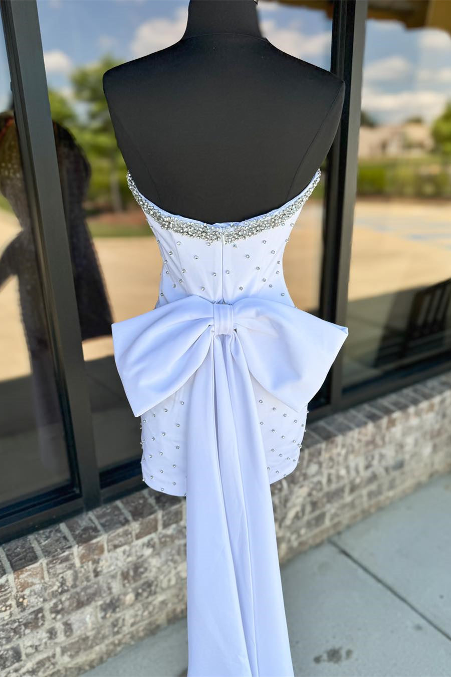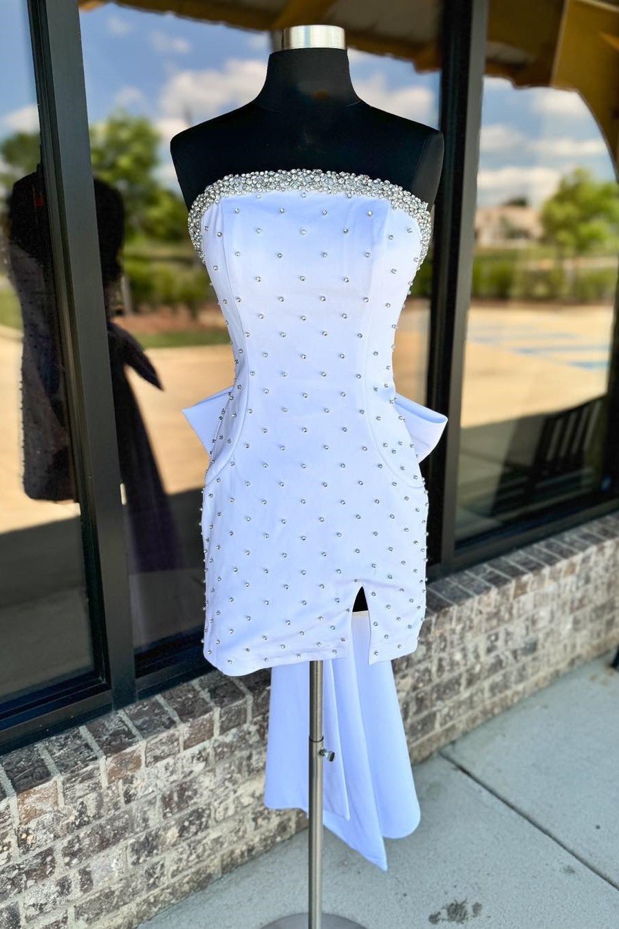 - Strapless neck with rhinestones