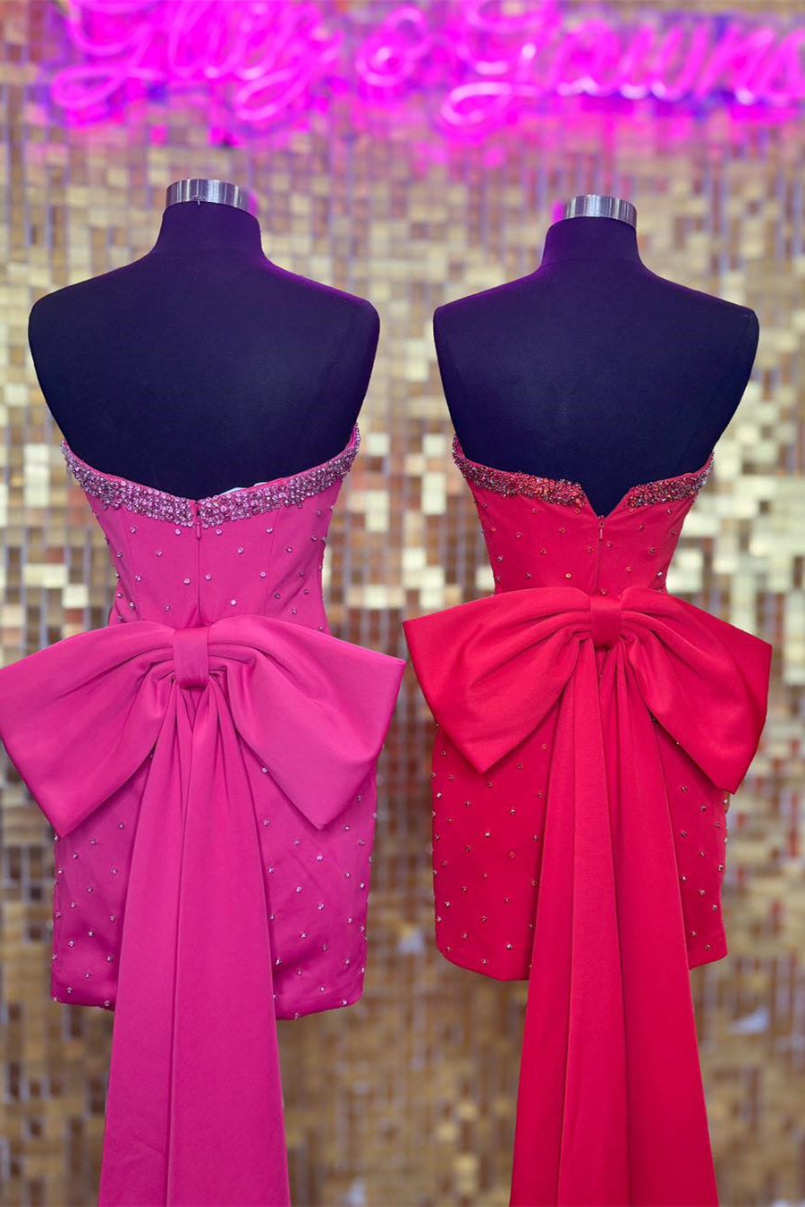 - Zip-up back with a bow