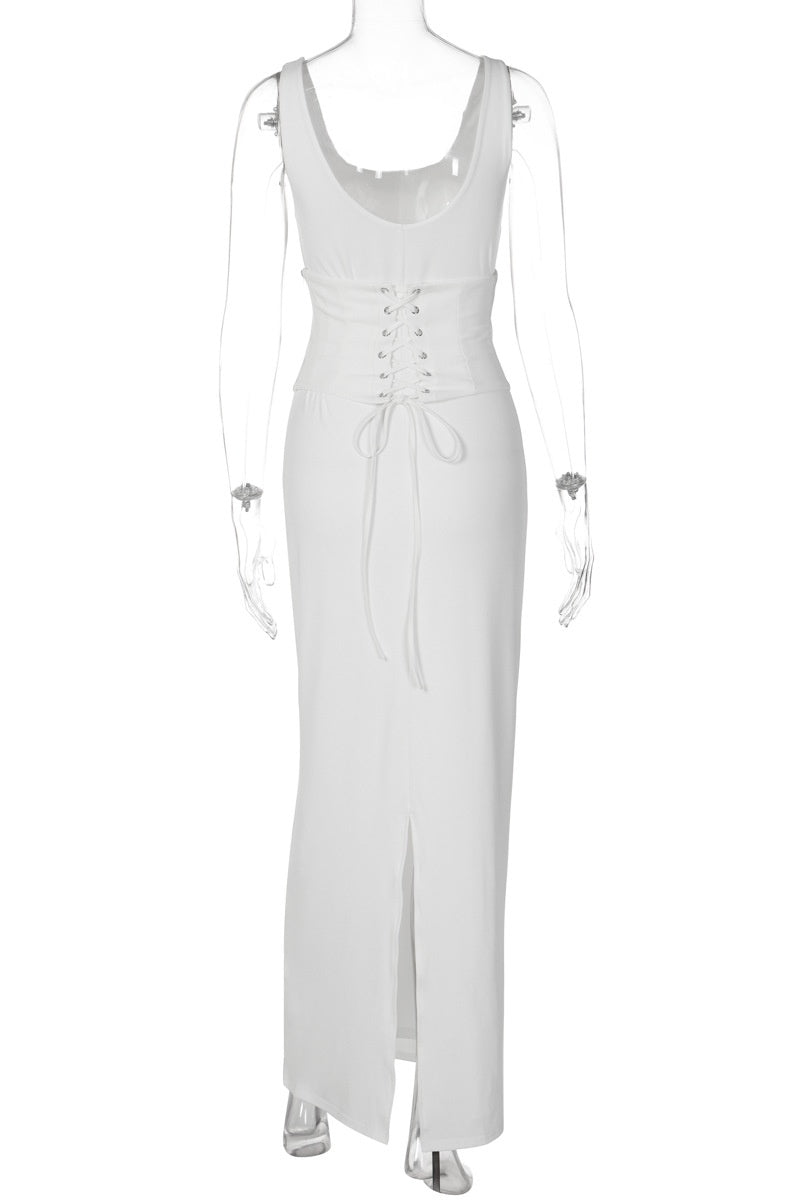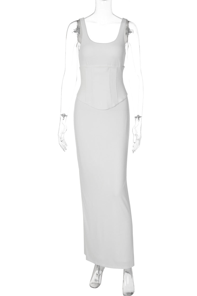 - Two-piece set: dress and corset top