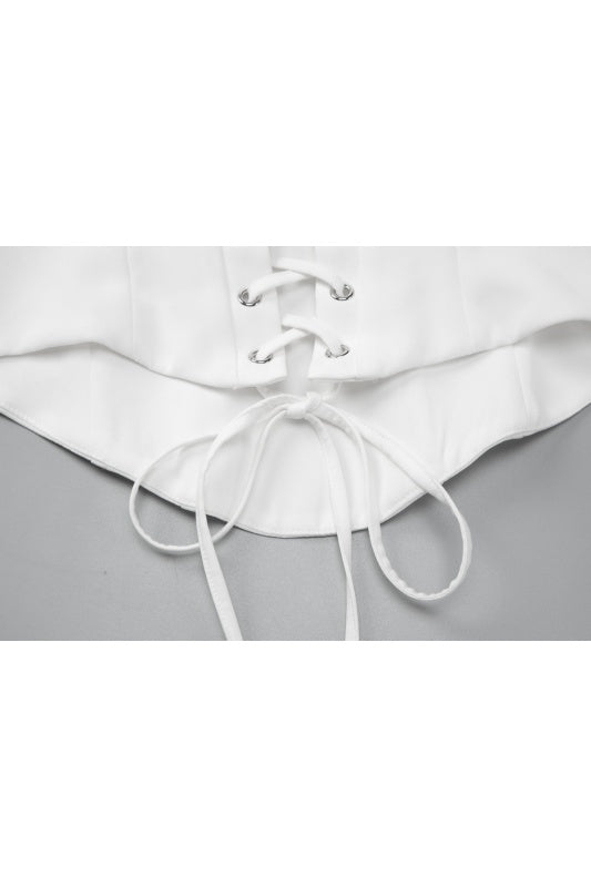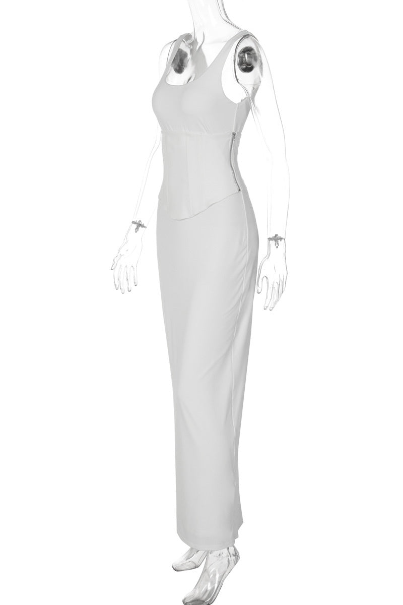 White Fitted Two-Piece Set with Square Neckline