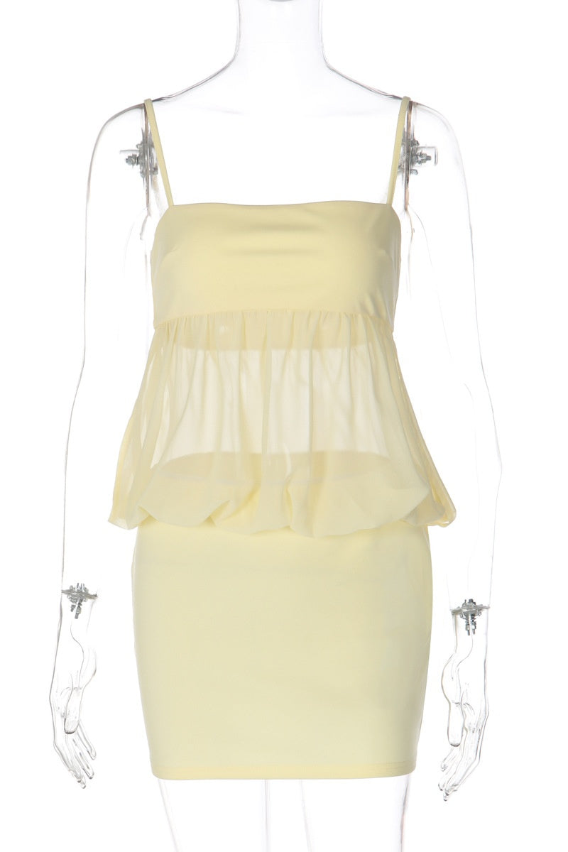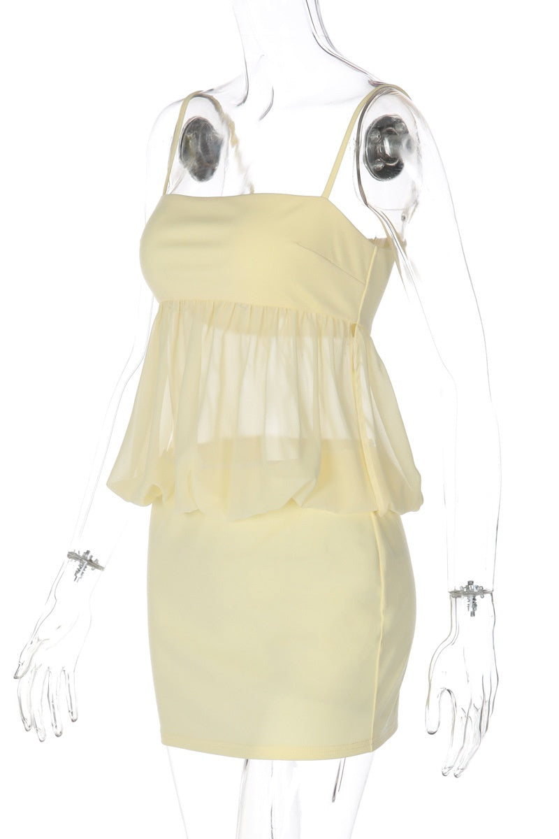 Yellow Bodycon Straps Mini Dress