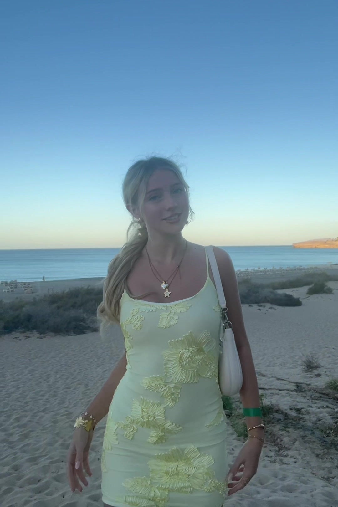 Yellow Jacquard Fabric Spaghetti Strap Dress