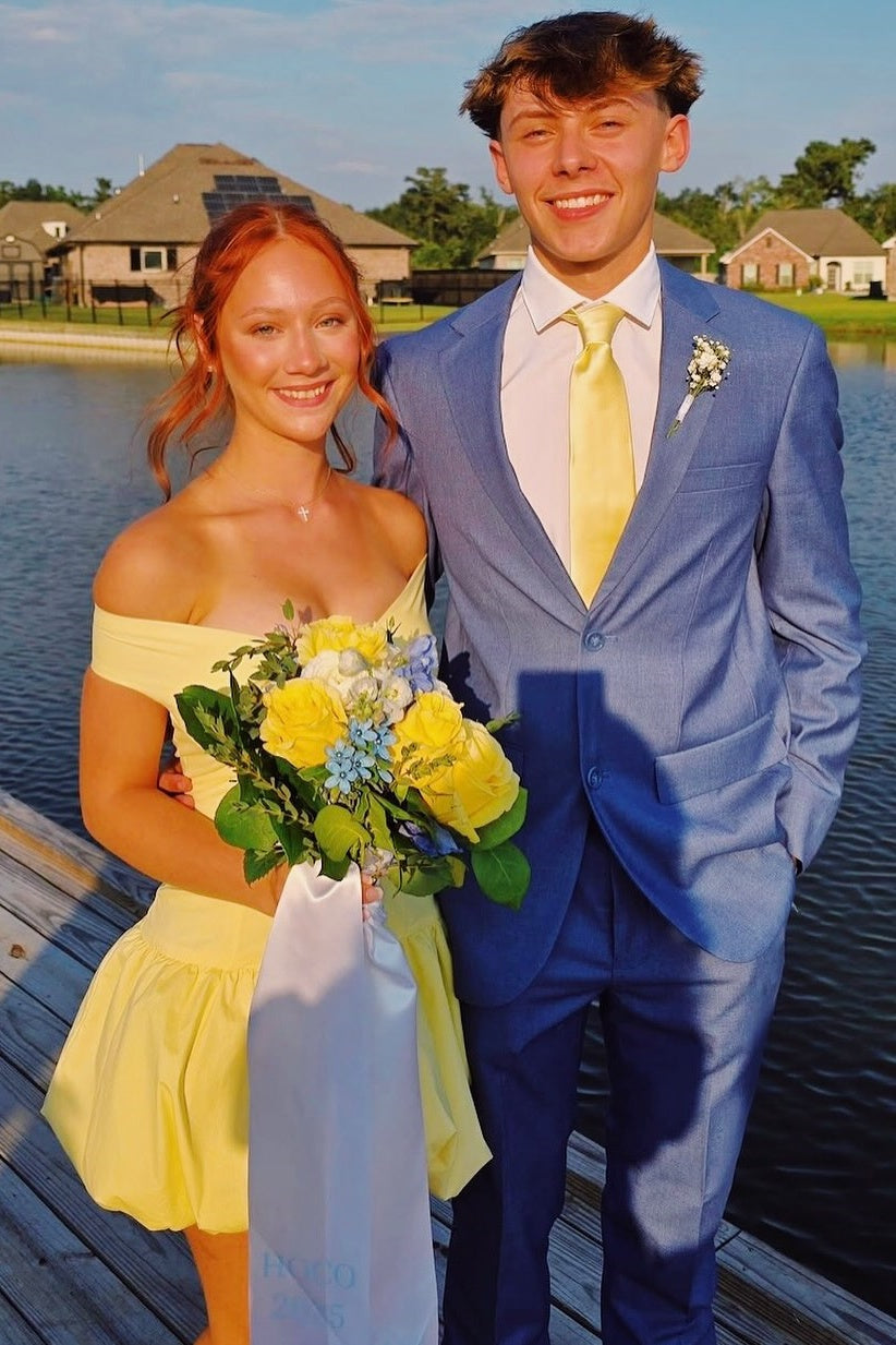 This dress features a polyester fabric in a vibrant yellow hue, showcasing an A-line silhouette with a sweetheart neckline. It includes a ruched bust detail, back tie straps, and a decorative bow at the chest. The hemline falls above the knee, complemented by a stylish low back design.