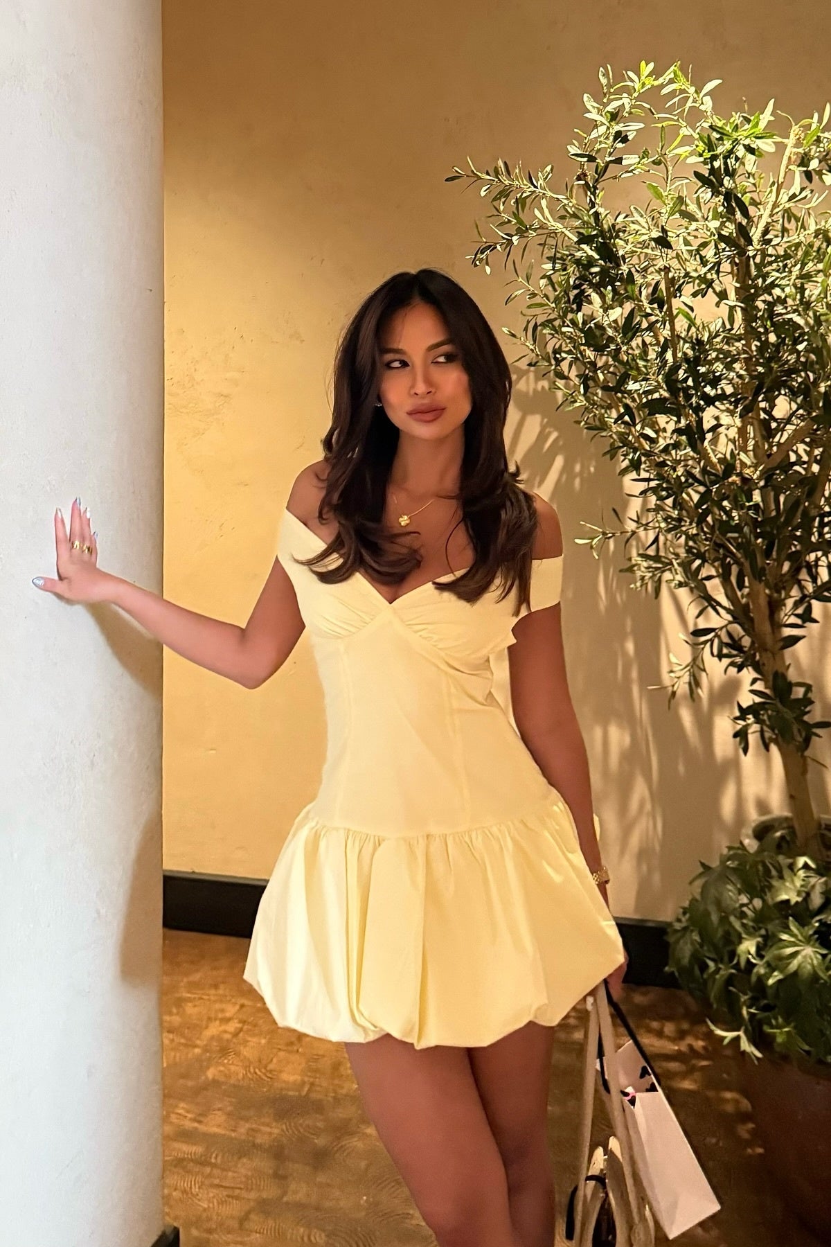 Yellow Off-the-shoulder A-line Bubble Dress