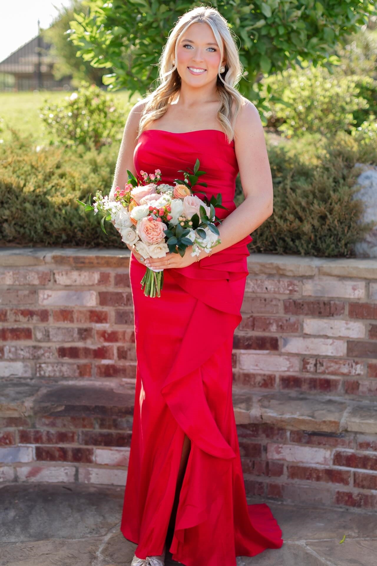 Yellow Strapless Mermaid Ruffle Formal Dress