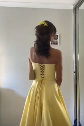 Yellow Strapless Satin A-line Long Formal Gown